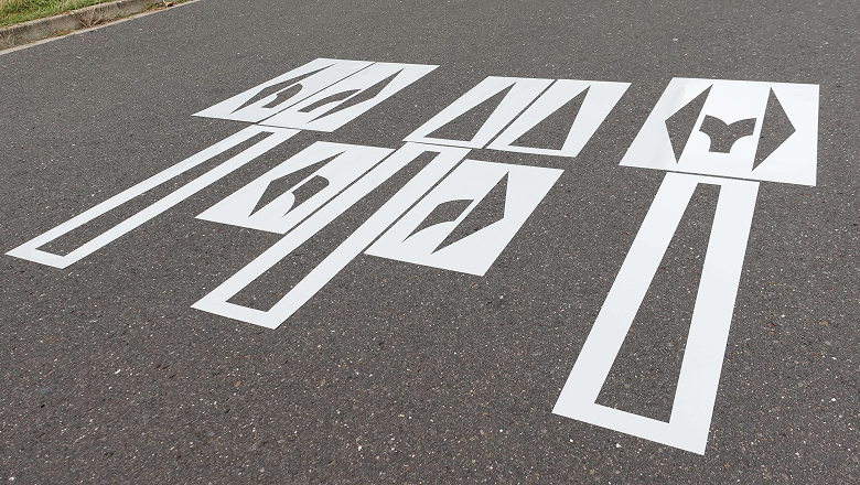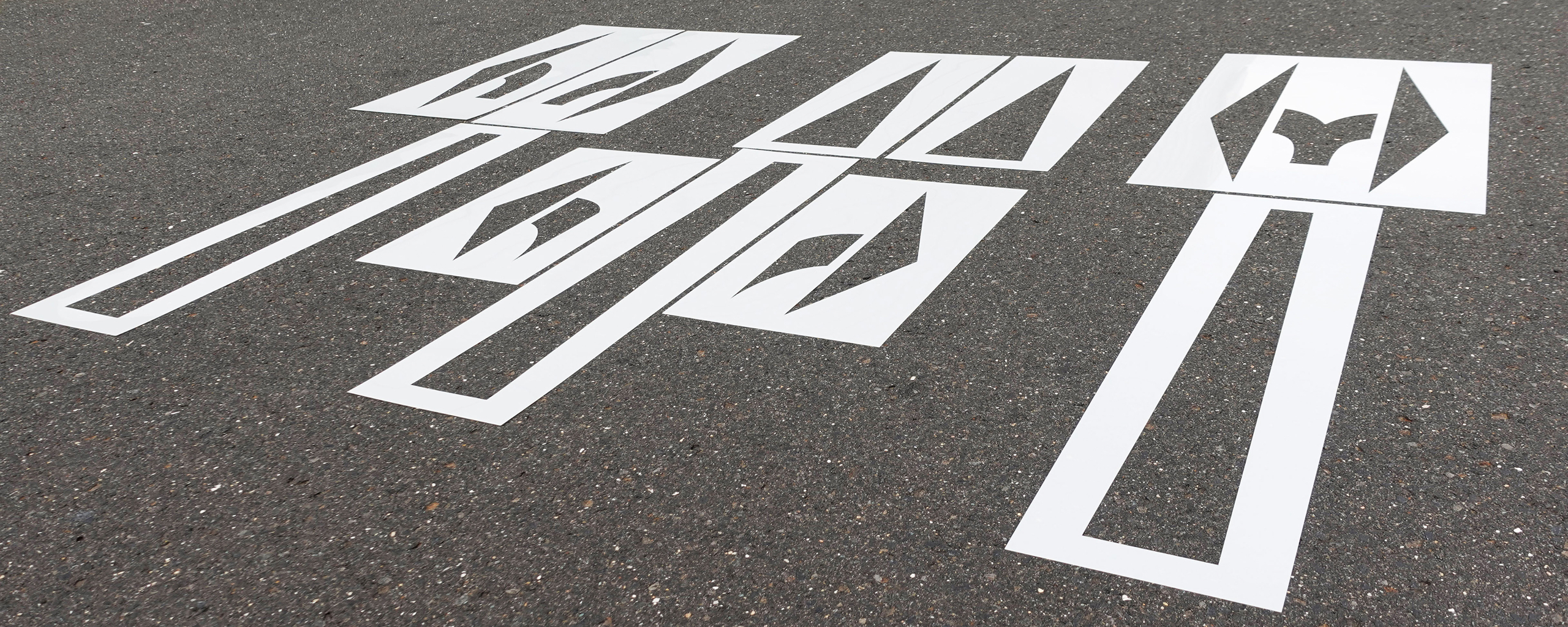 Schablonen für die klare Kennzeichnung von Kreuzungen bei Straßen und Wegen aller Art.