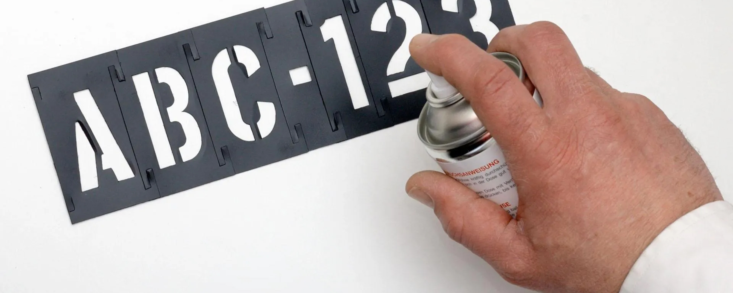 Kunststoff-Interlocking Schablonensätze sind universell einsetzbar und leicht in der Handhabung. Bei wechselnden Kennzeichnungen von Cases, Equipment, Maschinenteilen, Holzplatten oder Containern ein großer Vorteil.