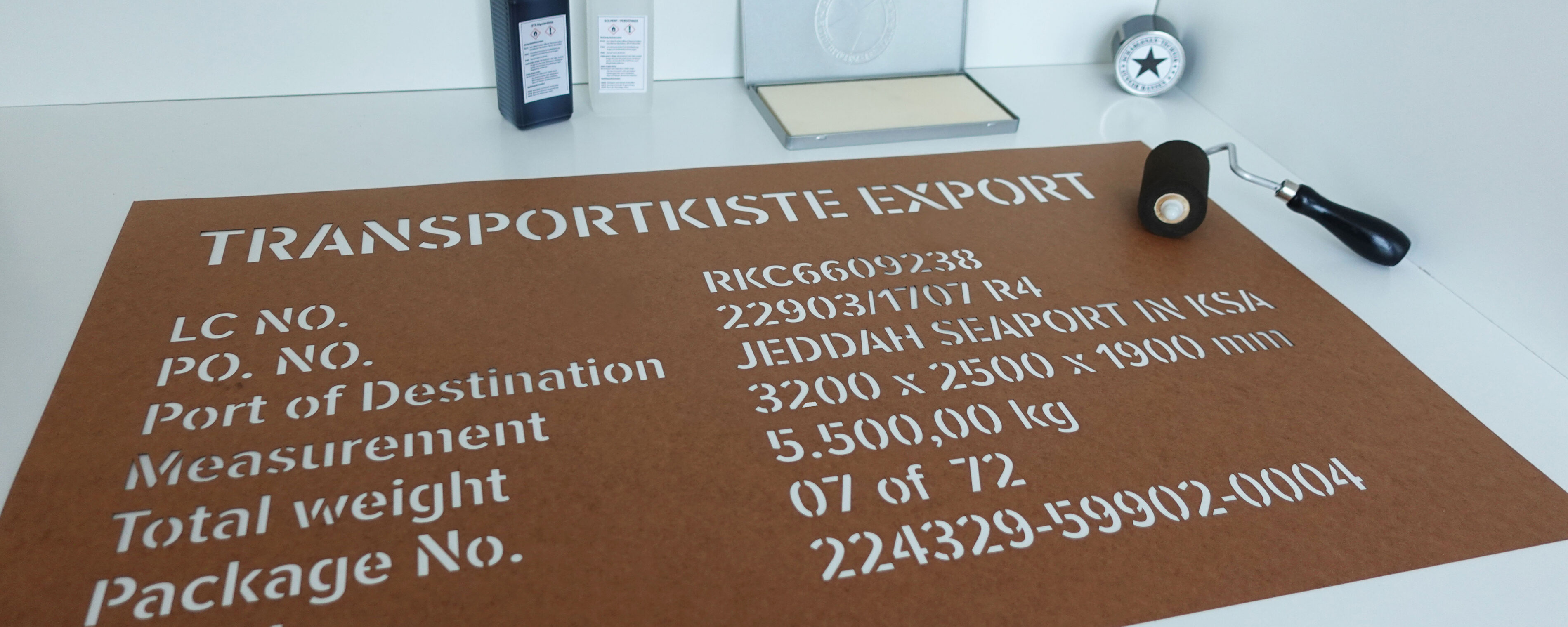 Textschablonen haben 1000 Einsatzmöglichkeiten. Sie erhalten bei uns für jeden Einsatz die richtige Schablone – ob für die Schiffskennzeichnung, die Straßenmarkierung, die Überseekisten oder den Besenstiel. Versprochen!