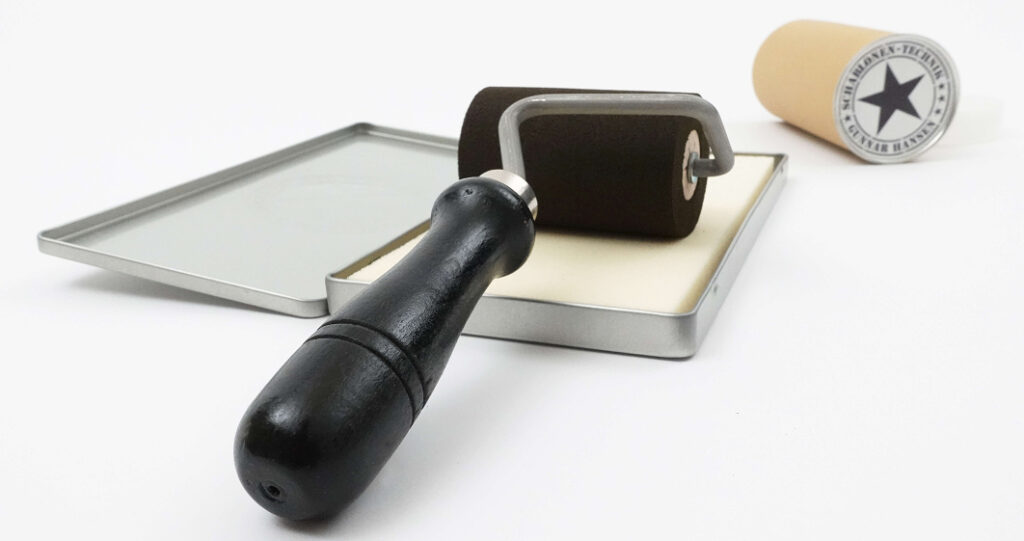 Kunststoff-und Messing-Schablonensätze, Signierroller, Ersatzrollen, Farbkissen, Signiertinte und Signierspray in allen Farben, Block-Out-Spray, Solvent, Schablonen-Ölkarton und Stencil-Schienen.